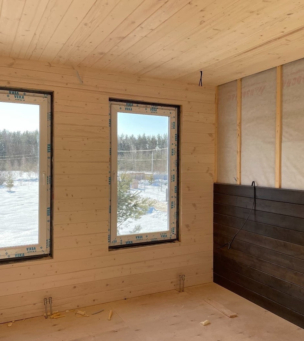 | Обшивка внутренних стен имитацией бруса с покраской | опция | опция | |||||||